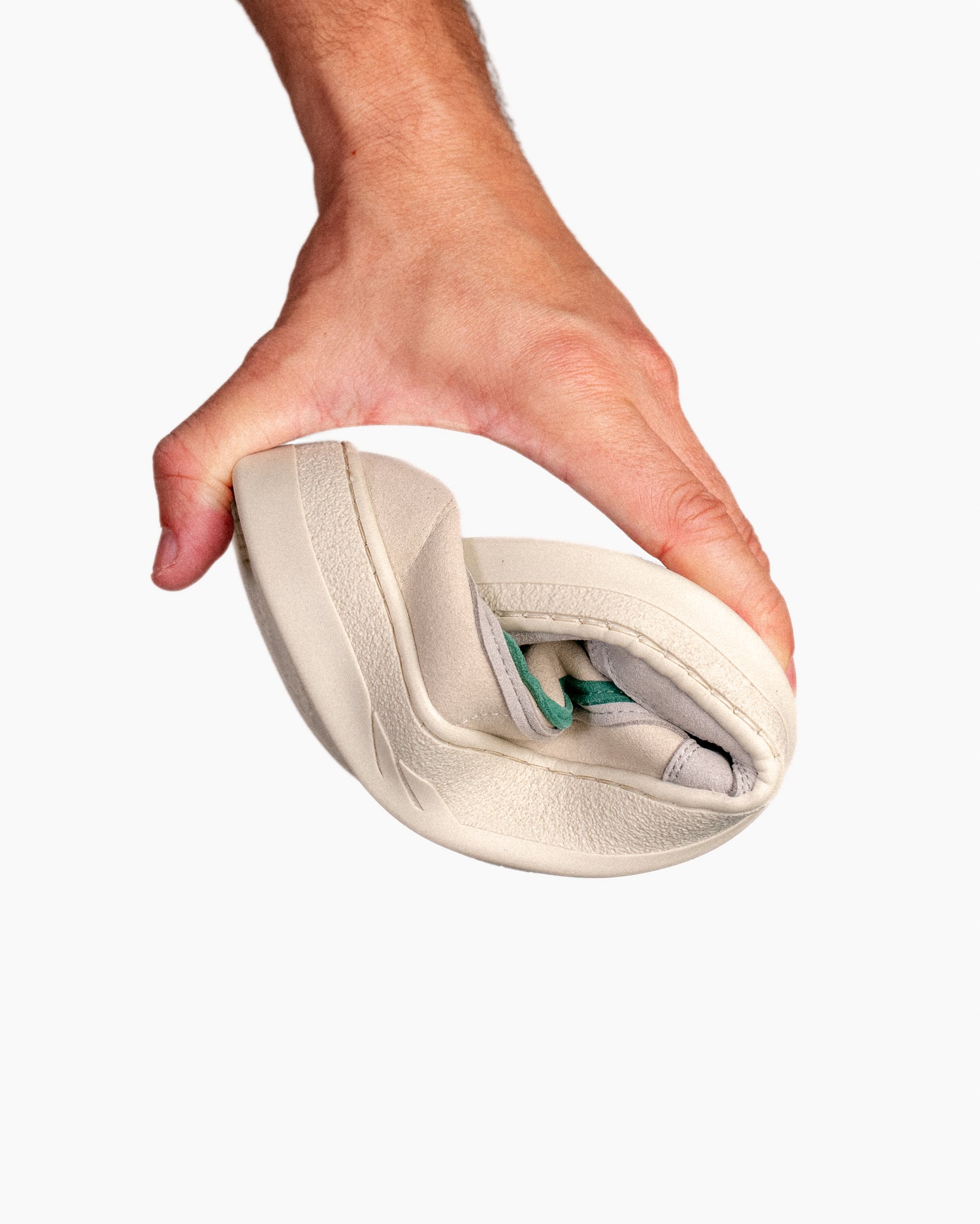 - Außensohle: 30 % recycelter Gummi und 70 % biobasiertes Material. Diese Kombination sorgt nicht nur für Langlebigkeit und Flexibilität, sondern auch für extreme Leichtigkeit und ist zu 100 % recycelbar.